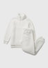 Lounge in style and comfort with this cosy cream set. It includes a fleece jumper with long sleeves, a classic funnel neckline and ribbed trims for added warmth. The matching joggers are designed with an elasticated waistband and cuffed legs for a secure fit. Perfect for wearing on lazy days at home.