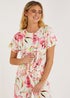 Learn moreGet cosy in style with this stunning pyjama top! Designed with a versatile cream base, it features a gorgeous all-over floral print and a classic crewneck for added comfort. Cut from a super soft material, it's finished with a tie front for an element of sophistication. Model Height: 5ft 7.