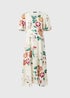 Cream Floral V Neck Midi Tea Dress