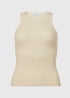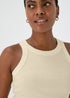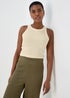 Cream High Neck Plain Ribbed Vest