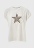 Our cream leopard star t-shirt is the epitome of casual chic. Crafted from a soft and durable cotton rich blend, this top will keep you comfortable all day long. Its relaxed silhouette and classic crewneck design make it a versatile piece that can be dressed up or down. With short sleeves this classic t-shirt is perfect for everyday wear while the leopard print star detailing adds a touch of style. Layer it under a blazer or cardigan for a smart-casual office outfit or pair with jeans and trainers for a casual everyday outfit.