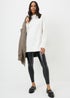 Stay cosy and effortlessly chic with this Cream Roll Neck Tunic Jumper — a timeless wardrobe essential perfect for the cooler seasons. Crafted from a soft, knitted fabric, this jumper offers a relaxed yet elegant fit, designed to keep you warm without compromising on style. The roll neck adds a touch of sophistication and extra cosiness, while the longline tunic shape provides flattering coverage, ideal for pairing with leggings, skinny jeans, or boots.