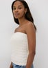 Cream Shirred Bandeau Crop Top