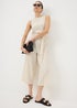 Refresh your wardrobe with this effortlessly polished culotte jumpsuit. Designed on a textured cream base with a contrasting black stripe pattern, it’s cut to a cropped length for a signature culotte silhouette. The belted waist cinches you in at the middle for a flattering shape, while the crew neckline, keyhole back and sleeveless finish keep the look clean and modern. Comfortable yet refined, it’s ideal for work-to-weekend styling.