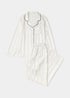 Learn moreAdd a touch of luxury to evening dressing with this classic pyjama set. With stripe jacquard detailing to bring some charm to the set, it's crafted from satin fabric for soft and smooth comfort all night long. Stylish black piping, a smart collar and a buttoned front complete the shirt, while the bottoms stretch at the waist and have a nice and relaxed fit through the legs. Model Height: 5ft 9.