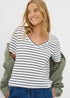 Cream Stripe V-Neck Regular Fit T-Shirt