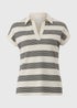 Cream Striped Sleeveless Polo Top