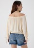 This elegant and versatile Cream Tie Neck Bardot Top is an essential for any woman's wardrobe. Crafted from sumptuous cream fabric, this top features a charming tie neck and chic Bardot neckline, and long cuffed sleeves, exuding femininity and grace. With its classic silhouette and timeless design, you'll find yourself reaching for it time and time again. For a classic and sophisticated look, pair it with tailored trousers and heels or a relaxed, off-duty vibe, wear it with jeans and sandals.