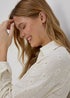 Cream V-Neck Long Sleeve Polo Shirt