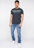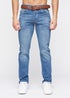Men's straight-fit jeans with PU leather belt (colour may vary) and branded metal buckle. Printed back waist patch.Button Fly.Fabric: 98% Cotton 2% Elastane