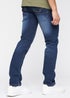 Crosshatch Dark Blue Wash Farrowed PU Belted Jean
