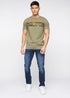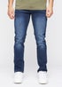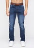 Men's straight-fit jeans with PU leather belt (colour may vary) and branded metal buckle. Printed back waist patch.Button Fly.Fabric: 98% Cotton 2% Elastane