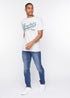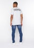 Presenting a men's crew neck t-shirt adorned with a luxurious satin woven inner back neck tape. Featuring a soft-touch print on the chest and an intricate two-colour soft-touch print on the back. Crafted from 100% Cotton fabric for unparalleled comfort.