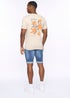 Introducing the Flowered Tee, a 100% Cotton T-Shirt made for comfort and style. It has a bold print and soft floral design on the left chest. Prints on the sleeve and back add a stylish touch. Pair it with our denim jeans for a fresh, everyday look.