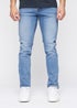 Men's skinny fit 5-pocket jean with branded button opening & button fly opening placket. 1 colour stitching with branded rivets, with slight blasting to front & back. Back pu patch to back of jean. 6 self fabric belt loops. Fabric: 98% Cotton & 2% Elastane