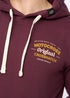 This men’s over-the-head hoodie combines everyday comfort with standout detail. Designed with a drawcord puller, front kangaroo pocket, and ribbed hem and cuffs, it offers a classic fit with practical features. The chest is finished with a soft-touch and flocked transfer print, complemented by high-build prints on the outer hood and sleeve for added style. A printed nylon label on the pocket, woven label on the hood, and a branded woven inner back neck label provide subtle branded touches. Crafted from a cotton and polyester blend, it delivers softness and durability, pairing effortlessly with your favourite jeans for a timeless casual look.