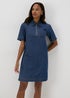Unleash your inner fashionista with our Dark Wash Denim Zip Front Mini Dress. This trendy and versatile piece combines the classic appeal of denim with a modern silhouette, making it a must-have addition to your wardrobe for any casual outing or stylish event. The dark wash denim, offering a rich, deep blue hue that complements various accessories and looks. Made from high-quality cotton denim, ensuring durability, breathability, and comfort for all-day wear. The stylish neckline features a relaxed collar, a quarter zip front, adding a contemporary edge to the classic denim dress. With a spacious chest pocket and vintage hem detailing. Dress it up for a night out with heeled boots and a statement necklace or keep it casual with sneakers and a tote bag for a relaxed day look.