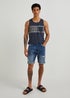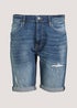 Perfect for the spring/summer months, these dark wash shorts will offer a wide range of outfit-building possibilities, Featuring an artistic paint splatter design and edgy ripped detailing, practical functions include a working fly and button fastening, belt loops and functional front and back pockets. Easy breezy turned-up hems complete the design. Model Height: 6ft 1.
