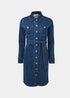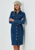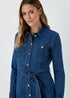 Learn moreThere's nothing better for sprucing up your wardrobe than a classic bit of denim. In a timeless dark wash and cut to a versatile midi length, a buttoned front ensures easy on/off, while the two buttoned chest pockets ensure secure storage space. Tailored with long sleeves to keep your arms covered from seasonal chills, it's finished with a sharp collar and a tie to flatteringly cinch you in at the waist. Partner with tights and boots. Model Height: 5ft 9.