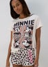 Introducing the Disney Mink Minnie Top & Shorts Set, a delightful ensemble for women who adore the iconic character! The top features a playful comic strip design of Minnie Mouse in various poses, set against a soft, comfortable fabric. Paired with matching shorts adorned with a trendy leopard print and an accent of Minnie’s bow, this set combines comfort and style for everyday wear. Whether you are lounging at home or taking a stroll, you will look adorable in this charming Disney outfit!