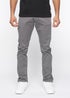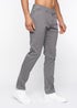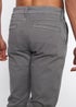 Men's chino lightweight canvas inner waistband facing and inner pocket badge. Dam coated metal button fastening to waistband, zip fastening to waistband, zip fastening fly, angled front side entry pocket and inner penny pocket with self colour rubber print. Welt back pockets, back yoke, twin-needle stitched outer leg seams and matching colour thread top stitching throughout.Fabric: 98% Elastane & 2% Elastane