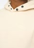 A soft pullover hoodie with a raised chest print. Features cut & sew sleeve panels, a kangaroo pocket, and ribbed hem & cuffs. Perfect to wear with jeans for a stylish outfit.