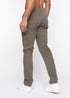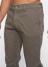 Men's chino lightweight canvas inner waistband facing and inner pocket badge. Dam coated metal button fastening to waistband, zip fastening to waistband, zip fastening fly, angled front side entry pocket and inner penny pocket with self colour rubber print. Welt back pockets, back yoke, twin-needle stitched outer leg seams and matching colour thread top stitching throughout.Fabric: 98% Elastane & 2% Elastane