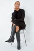 Dusk Cable Knit Midi Jumper Dress from Roman. Start the new season in style with this Dusk knitted midi dress. Cut from a luxurious cable knit fabric, this jumper dress has cosy full-length sleeves and a sophisticated high neckline to keep you warm during the colder seasons. A timeless cable knit texture ensures you are effortlessly stylish for any occasion. Being plain in colour means this pull-on dress can be dressed up with knee-high boots & a leather jacket or dressed down with biker boots and a fluffy gilet!