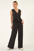 Dusk Black Crinkle Wide Leg Stretch Trouser