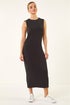 Dusk Gathered Waist Midi Dress from Roman. Elevate your Spring/Summer wardrobe with this effortlessly chic gathered waist midi dress. Crafted from soft and stretchy fabric, this sleeveless dress features a round neck and a flattering fitted shape that accentuates your silhouette. The plain design is elevated with intricate gathered details that add a touch of sophistication. Perfect for any day or night outing, style this midi dress with boots and a denim jacket for a trendy and versatile look!