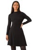 Dusk Ribbed Skater Jumper Dress from Roman. Get cosy and stylish this Autumn Winter season in our Dusk ribbed skater jumper dress. It boasts a trendy high neckline and long sleeves, perfect for chilly days. Crafted from a comfortable mix of woven knit fabrics with a ribbed texture, this dress finishes at knee length in a flattering skater shape. Pair it with a denim jacket and ankle boots for a stunning fall look that will turn heads wherever you go!