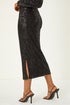 Dusk Sequin Pencil Skirt from Roman. Shimmer and shine all night long in this dazzling sequin pencil skirt. Perfect for the Autumn/ Winter season, this midi length skirt is covered in full sequins that catch the light beautifully. The sleek pencil silhouette is ultra flattering and effortlessly chic, making it the perfect piece for special occasions. Pair it with a stylish blouse and heels for a show-stopping evening look that is sure to turn heads!