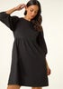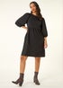 Dusk Textured Blouson Puff Sleeve Dress from Roman. Dress to impress in this chic textured blouson dress, perfect for the Autumn/Winter season. Crafted with a stylish round neck, 3/4 puff sleeves, and a flattering knee-length fit and flare shape, this midi dress is a must-have wardrobe piece. Complete with handy side seam pockets, you can add tights and ankle boots for a fashionable yet functional outfit that will take you from day to night effortlessly.