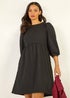 Dusk Black Textured Blouson Puff Sleeve Dress