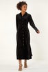 Dusk Velvet Button Midi Shirt Dress from Roman. Make a statement this Autumn Winter with our must-have velvet midi shirt dress. Designed with full-opening front buttons adorned with gem details, this bodycon dress is perfect for versatile day-to-night occasions. The shirt-style collar and feminine v-neckline add sophistication, while the long sleeves keep you warm in style. Pair with your favourite winter boots and a coat for a complete look or layer with a denim jacket for an effortless outfit!