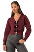 • Dusk Burgundy Bow Buttoned Knit Cardigan