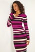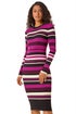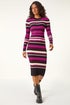 Learn moreStriped High Neck Knit Bodycon Midi Dress from Roman. Update your Autumn Winter wardrobe with our striped knit dress this season. Designed in a bodycon fit and stylish midi-length finish. The high neckline adds a touch of sophistication, while the long sleeves keep you warm and snug during the cooler months. Easy to pull on, this dress is crafted from a soft knit fabric to ensure comfort. Pair with your favourite winter boots, tights, and coat for a trendy style!