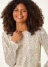 Sequin Long Sleeve Stretch Top from Roman. Shimmer and shine in our stunning sequin top this season. Designed with intricate metallic sequin embellishments, this top features a flattering crew neckline and shimmering details. Lined to keep you warm, it boasts long sleeves and button and loop fastenings with a stylish keyhole feature. This top sits at hip length, making it the ideal choice to pair with wide-leg trousers and heeled boots for a stylish look!