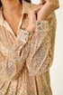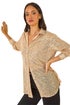 Dusk Sequin Button Through Blouse from Roman. Bring some sparkle to your Autumn Winter wardrobe with our dazzling sequin button through blouse. Adorned in shimmering embellishments, this shirt style blouse features a full button through detail for easy styling. Cut to a hip length finish, this comfortable piece is crafted from a mesh fabric with dazzling sequin detailing. The long drop shoulder sleeves add a touch of elegance. Pair with faux leather pants and ankle boots for a trendy fall look.