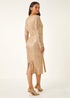 Dusk Sequin Cowl Neck Pencil Stretch Dress from Roman. Stand out in style this Autumn Winter with our dazzling sequin dress. The flattering cowl neckline and long sleeves beautifully complement the bodycon shape, adorned in all-over sequins for a touch of glamour. Crafted from a comfortable sequin on mesh fabric, this dress finishes elegantly at a midi length with a concealed back zip fastening for a seamless finish. Perfect for special occasions, simply style with heels and a bolero for an effortless look!