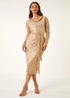 Dusk Gold Sequin Cowl Neck Pencil Stretch Dress