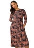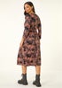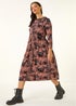 Dusk Abstract Print Pocket Stretch Midi Dress from Roman. Stay stylish and cosy this Autumn Winter with this gathered pocket dress. Designed with a classic round neckline and long sleeves, this dress is crafted from a comfortable stretch fabric featuring a trendy abstract print. Finishing at a practical midi length, this dress also boasts essential side pockets. Pair with a denim jacket and ankle boots for a stunning fall look that effortlessly blends comfort and style!