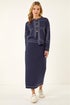 Dusk Navy Contrast Stitch Buttoned Skirt