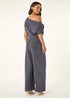Dusk Metallic Drape Side Top from Roman. This striking metallic drape side top, presented in a rich navy colourway, features an asymmetrical off-shoulder design that effortlessly blends modern edge with elegance. The ruched off-shoulder sleeve adds a flattering touch of texture, while the short sleeves and asymmetrical neckline create a unique and stylish silhouette. Finished to sit at the hips, this top pairs perfectly with jeans and boots for a chic, contemporary look that’s ideal for casual outings or evening events.