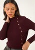 Dusk High Neck Button Detail Rib Jumper from Roman. Elevate your Autumn wardrobe with our trendy button-detail rib jumper in a stylish mocha hue. Crafted in a cosy ribbed knit fabric, this jumper features a trendy front button detail and a flattering hip-length finish. The high neckline adds a touch of sophistication to the overall look. Pair with your favourite jeans and ankle boots for an effortlessly stylish seasonal look!
