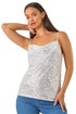 Dusk Silver Cowl Neck Sequin Cami Top