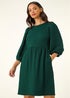 Dusk Teal Textured Blouson Puff Sleeve Dress