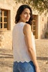 Dusk Broderie Button Blouse from Roman. Embrace feminine charm with this delightful broderie button blouse. Crafted from a delicate floral embroidered fabric, this blouse features a scalloped hem for extra interest and a row of functional buttons down the front. The non-stretch, comfortable fabric ensures you feel stylish and at ease all day long. Pair with jeans and sandals for a chic and girly Spring/Summer look.