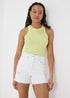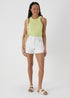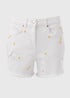 Upgrade your summer wardrobe with our Ecru Embroidered Denim Shorts. Crafted in a light ecru shade, these shorts feature delicate yellow flower embroidery with orange centers, adding a touch of feminine charm. The classic five-pocket design and button closure make them versatile for casual outings. Pair them with your favourite tops for a stylish and fresh look.