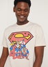 Learn moreCalling all Warner Bros fans! Designed in an ecru shade for practicality, this T-shirt features large prints of your favourite Looney Tunes characters and a large Superman logo for extra style points. Crafted with a super soft fabric, it includes a timeless crewneck and short sleeves to ensure a comfy wear. Model Height: 6ft 3.